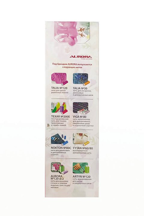 Нитки швейные Aurora производятся в Польше на немецком оборудовании. В процессе производства по немецким технологиями используются европейское сырьё и высококачественные красители. Нитки гипоаллергенны, соответствуют европейскому стандарту качества, рекомендуются для пошива постельного и детского белья.