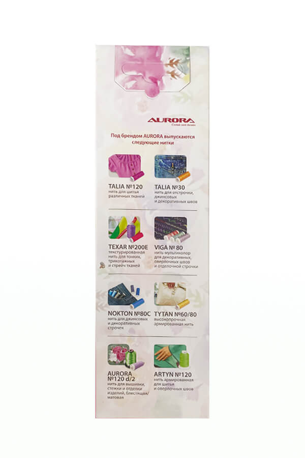 Качество производства нитей Aurora полностью соответствует требованиям международной организации стандартизации (ISO), а также имеет подтвержденные сертификаты ассоциаций текстильной промышленности США и Японии. Попробуйте и оцените качество нитей Aurora для машинной вышивки и стежки.