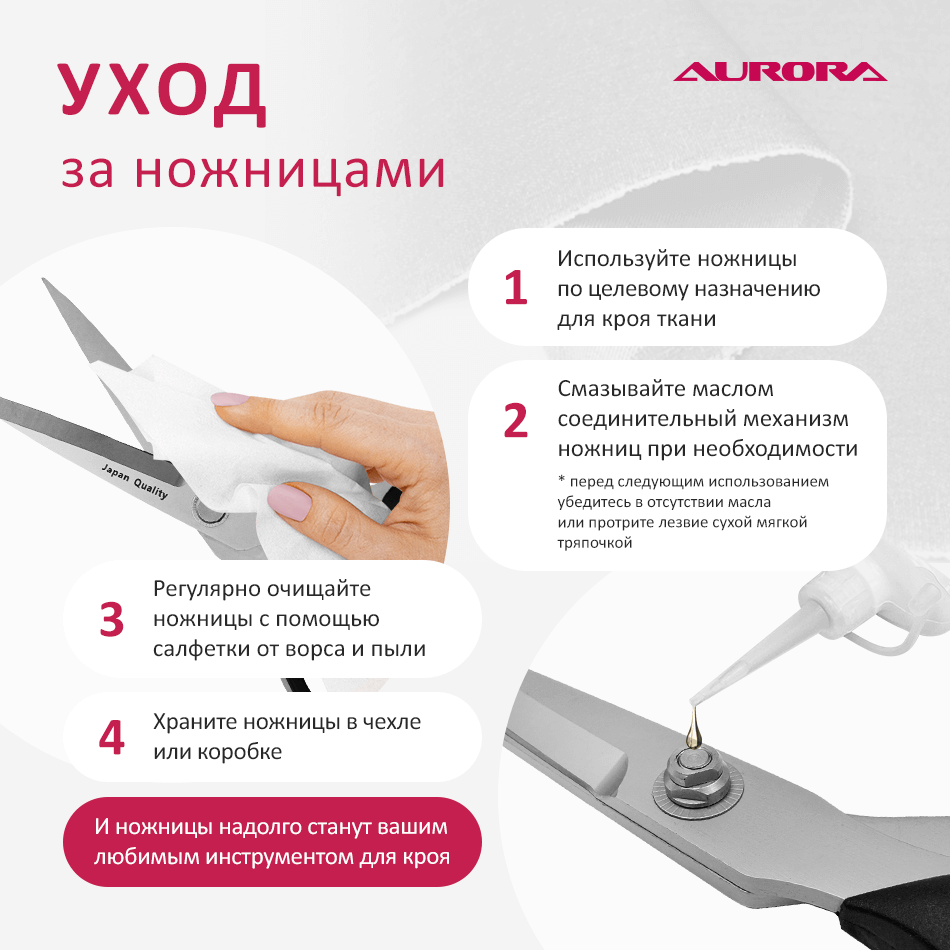 Ножницы портновские профессиональные облегченные Aurora AU 1209-105 для раскроя многослойных, толстых и тяжелых тканей.