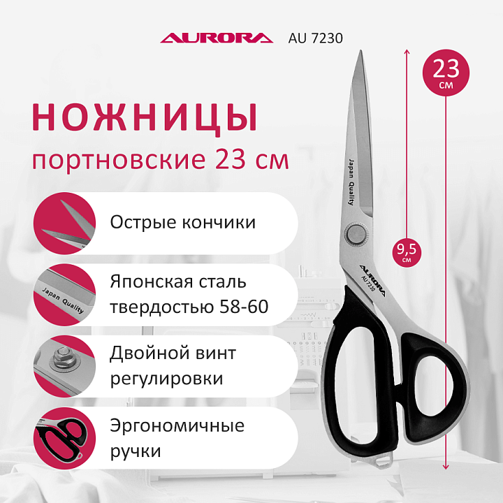 Ножницы серии "Профи Премиум" портновские профессиональные AU-7230, 23 см