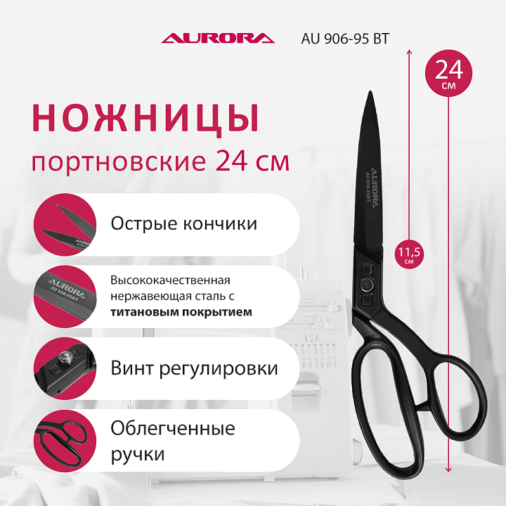 Ножницы серии "Премиум" портновские профессиональные AU 906-95BT, 24 см