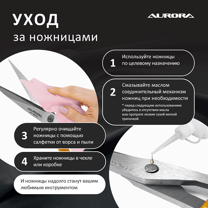 • Универсальность: предназначены для подрезки нитей, вспарывания, прорезания петель, выполнения надсечек и других мелких работ в шитье, рукоделии и вышивке.
