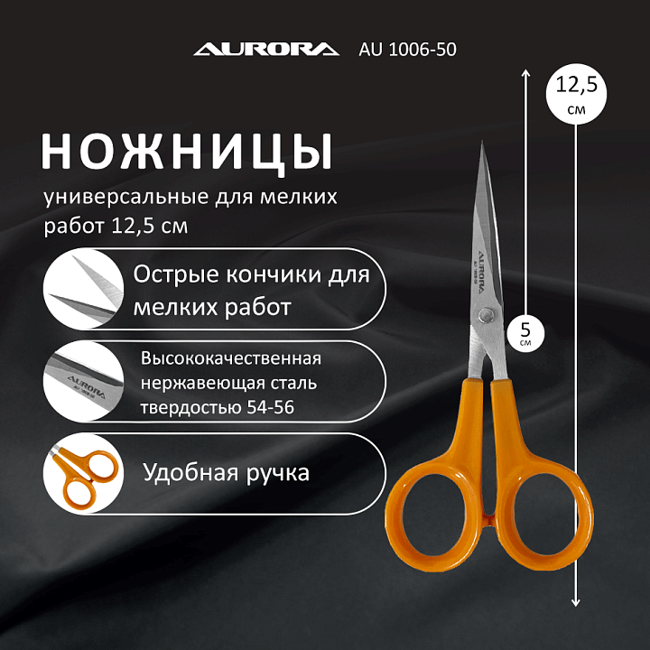 Ножницы серии "Профи Комфорт" универсальные для мелких работ AU 1006-50, 12,5 см