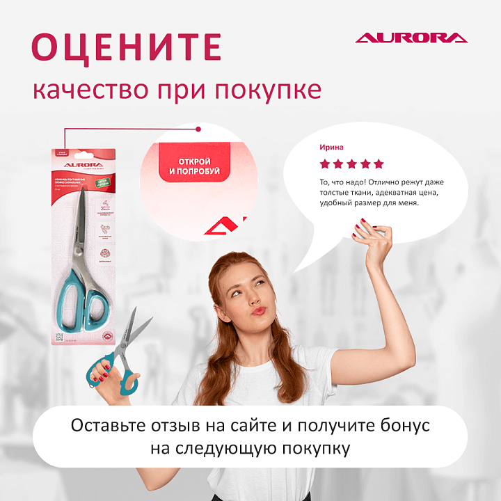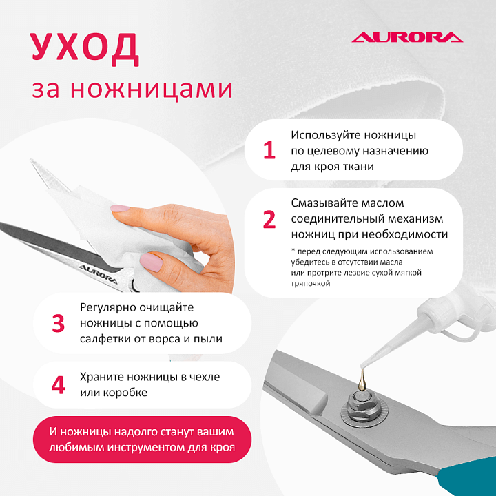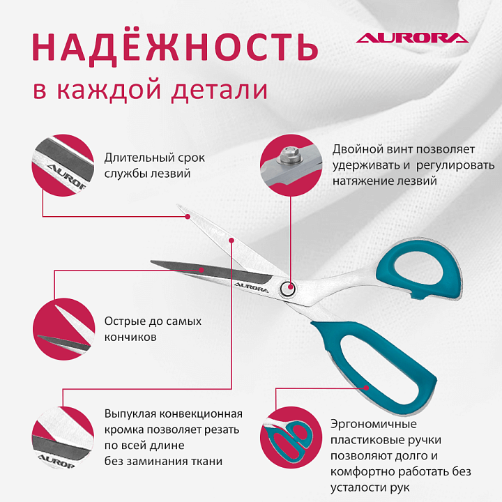 • Острые кончики лезвий позволяют точно выполнять сложные выкройки, прорезать петли, работать с узкими деталями и делать точные надрезы.