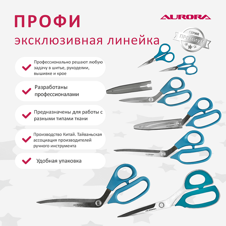 Серия «Профи» - линейка профессиональных ножниц, предназначенная как для профессионального, так и домашнего шитья.