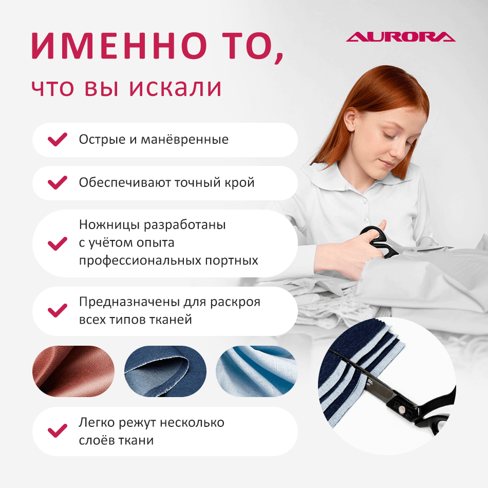 Ножницы портновские профессиональные с увеличенным углом наклона рукояти Aurora AU 908-100 предназначены для раскроя любых тканей.