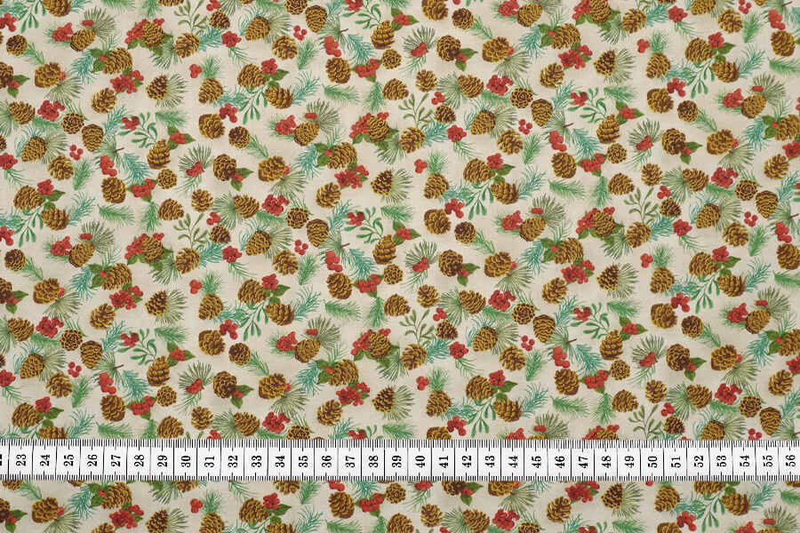 Дизайн ткани выполнен в тематике "Природа, Новый год".